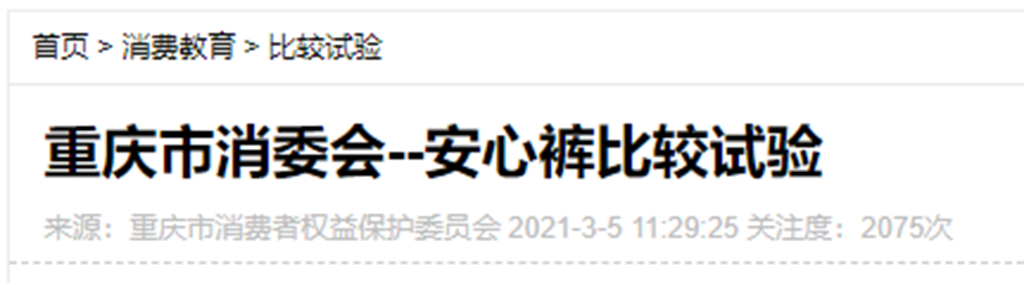 經(jīng)過深入了解,發(fā)現(xiàn)重慶市消費(fèi)者權(quán)益保護(hù)委員會的確曾經(jīng)發(fā)布過關(guān)于安心褲的檢驗結(jié)果,此次對目前市場上比較暢銷的15款安心褲開展了比較試驗,主要對安心褲的衛(wèi)生性能、安全性能、功能性指標(biāo)、舒適性指標(biāo)等進(jìn)行測試。.png)